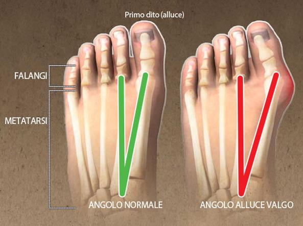 L'alluce valgo è una delle patologie più comuni del piede ed è caratterizzata dallo spostamento della falange e della testa distale mediale del primo metatarso, creando nei casi più gravi un vero e proprio angolo acuto sporgente verso asso mediale del nostro corpo.